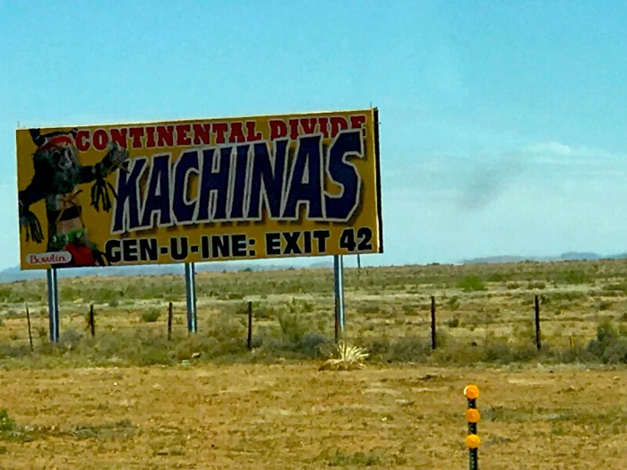 Now, in fairness, New Mexico was also filled with many signs enticing us to stop and buy a variety of things, like these Pueblo Indian Kuchinas, available to purchase right on the continental divide: