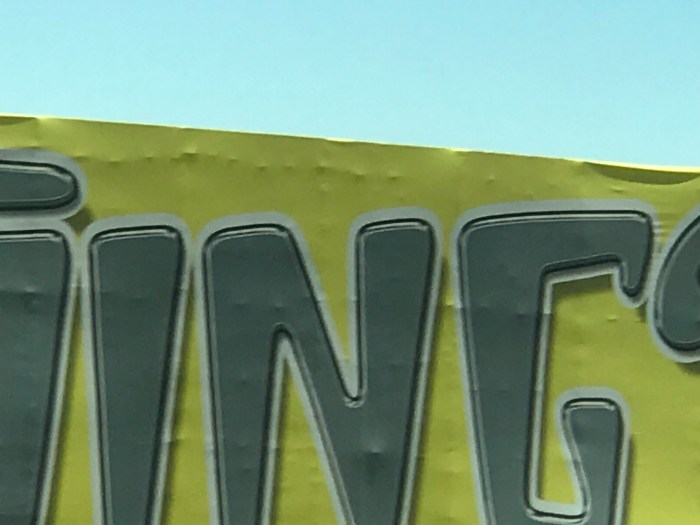 I noticed a sign up ahead, with a cool 50’s horror movie vibe to it, and I tried to get a shot: