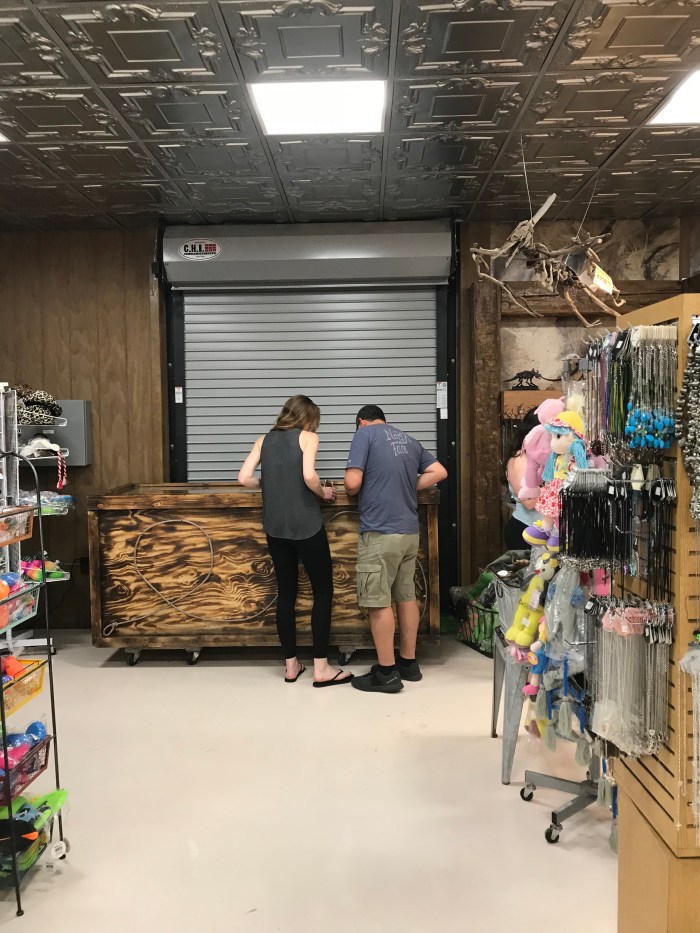 “Oh, it’s right back there”, the woman at counter said when we asked, pointing to where a couple was standing over what looked to be a wood-framed freezer…