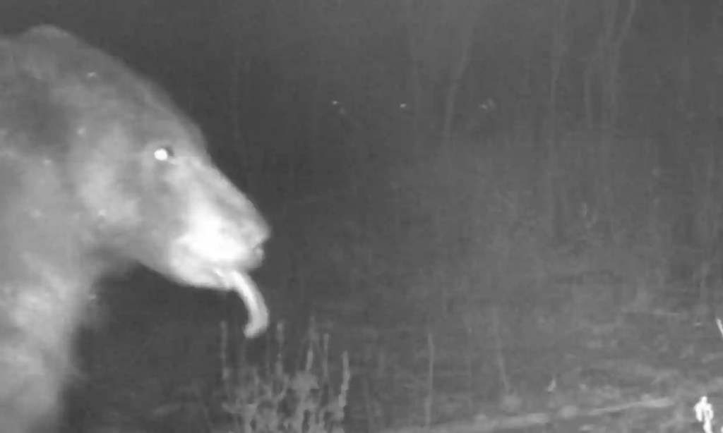 The bear can be seen from a number of angles, full face staring into the lens, just a paw, tongue out, a backside walking away and various other shots.