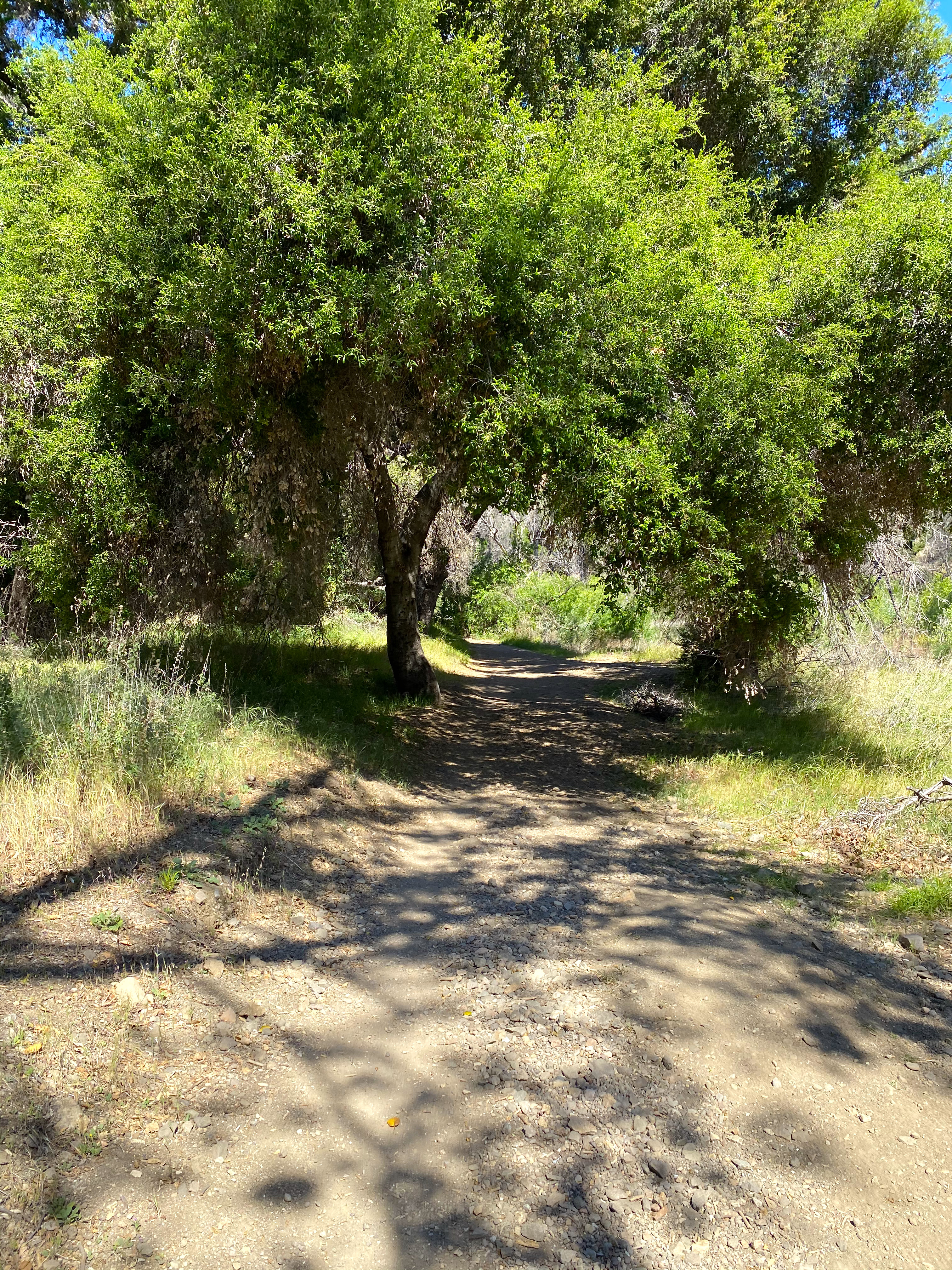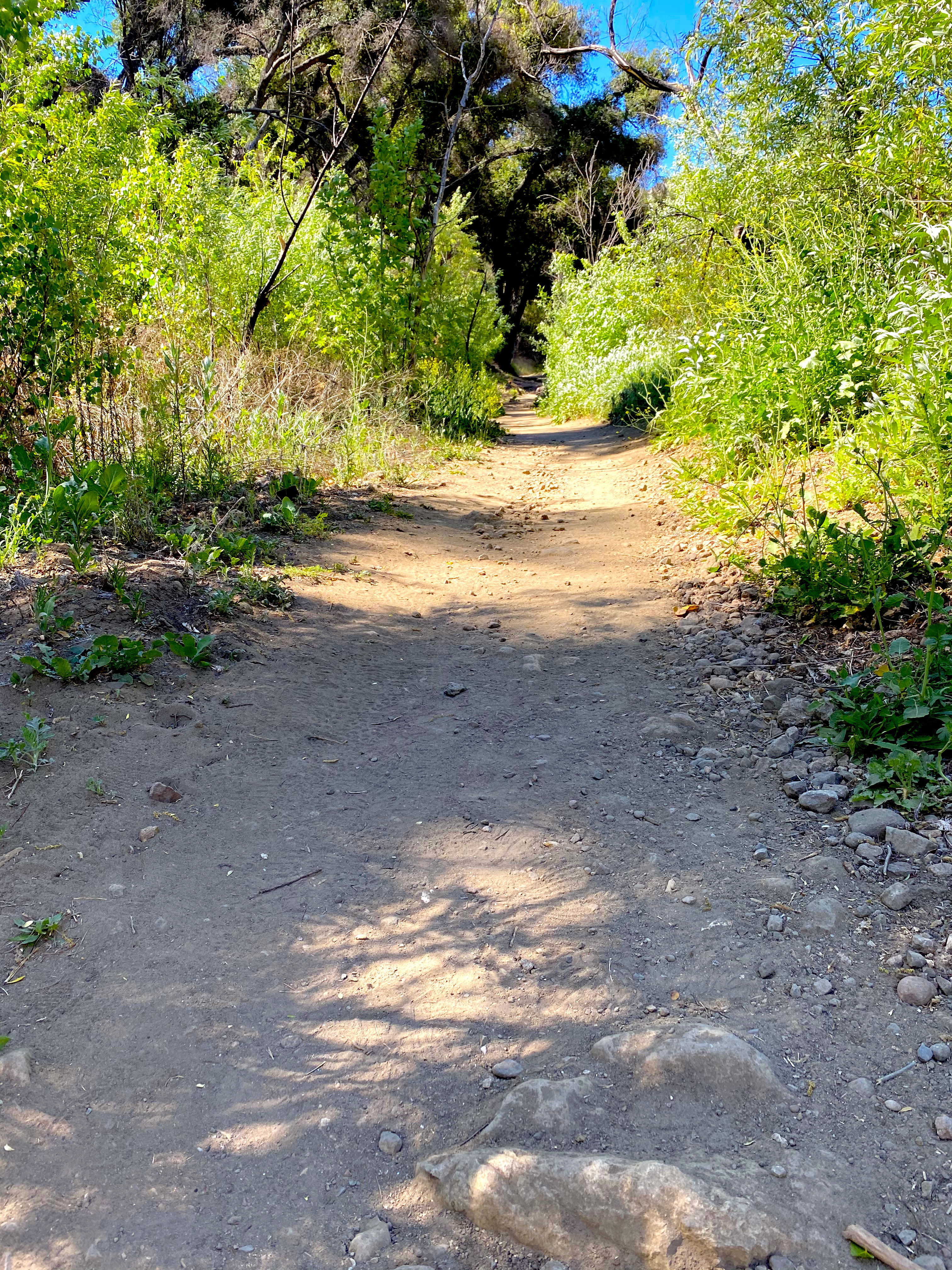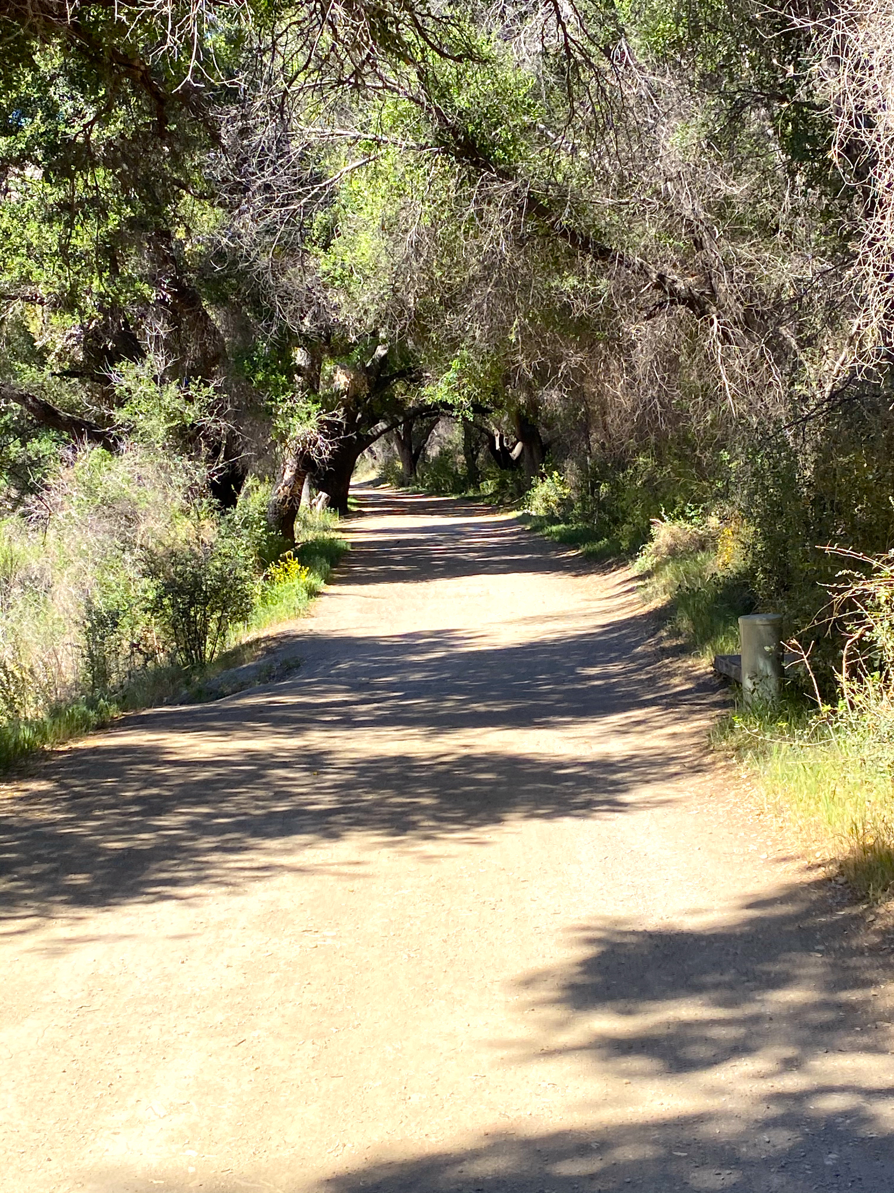 The “hike” begins as more of a leisurely walk on a wide dirt road, with a dry creek bed on one side and plenty of shade as well…but that quickly changes: