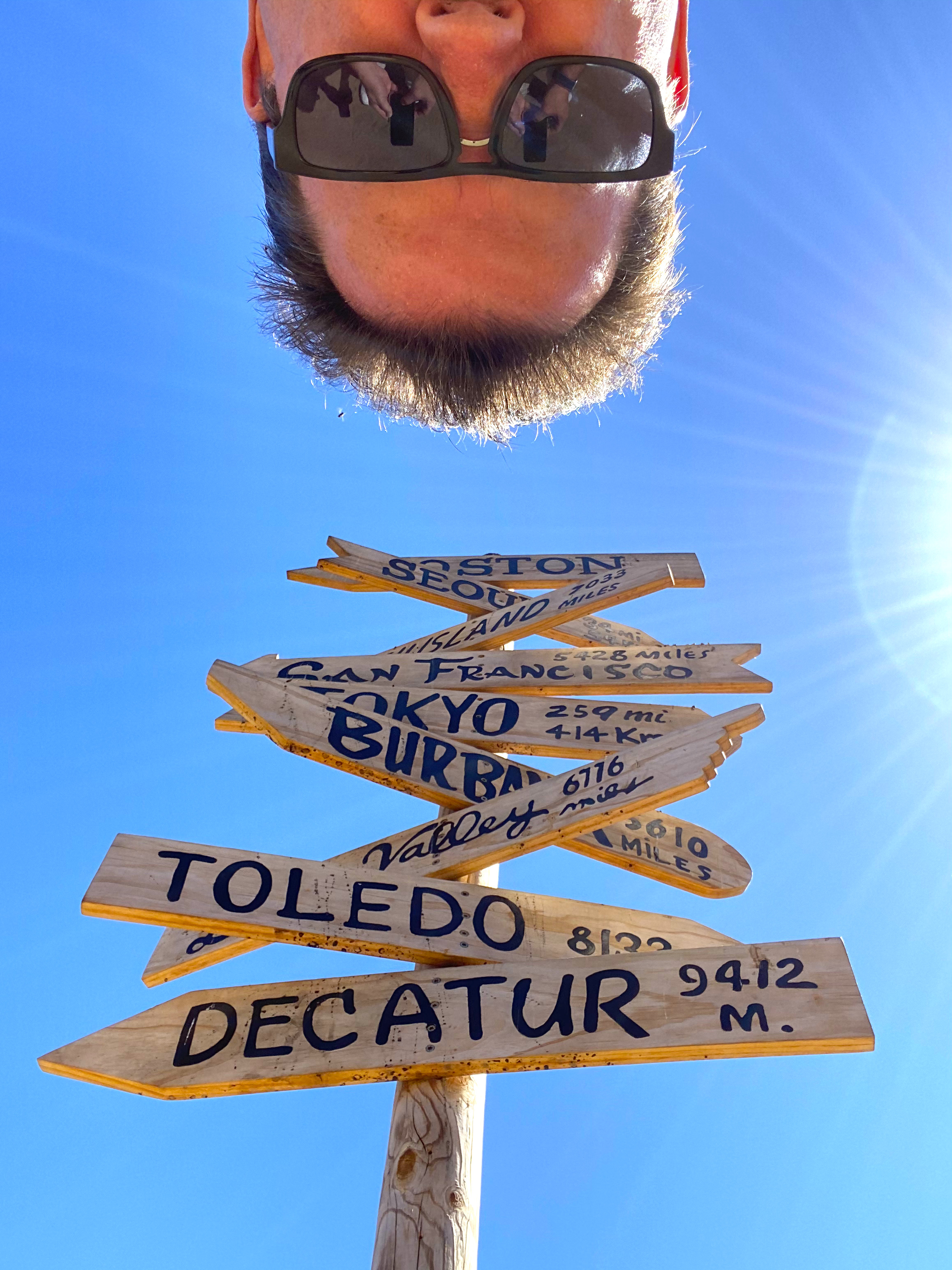 I think my favorite is the sign post with mileage to cities, and your ‘signature’ photo! This is a long walk to see some memorabilia.