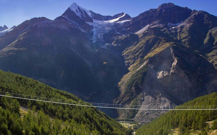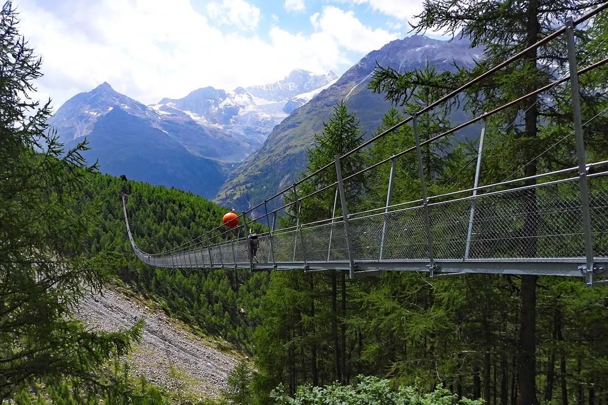 The company Swissrope designed the Charles Kuonen Suspension Bridge to be higher (and therefore longer) than its predecessor. At its highest point, the bridge is 279 ft. above the ground – 30 stories!