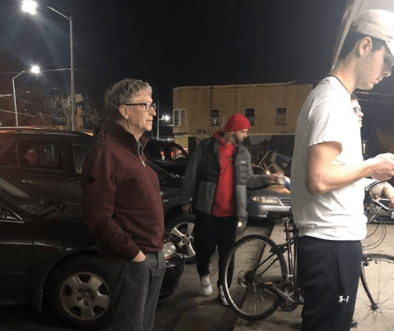 Yes, this burger stand is so popular that Bill Gates waits in line for a bag of burgers as well!
