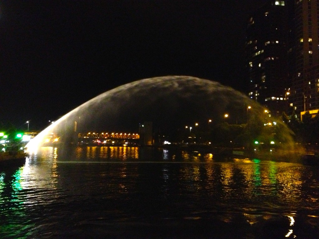 And what is that spraying across the shot? Well, that’s the river’s iconic water cannon! During the warm months, the river shoots an 80-foot stream of water every hour during the day!