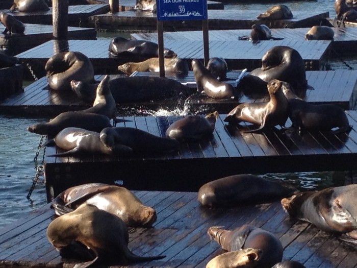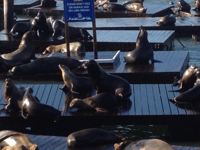 These very rowdy creatures frolic in the water and slide up onto the buoys that line the pier…they are fun and free to watch, and they make quite a racket!