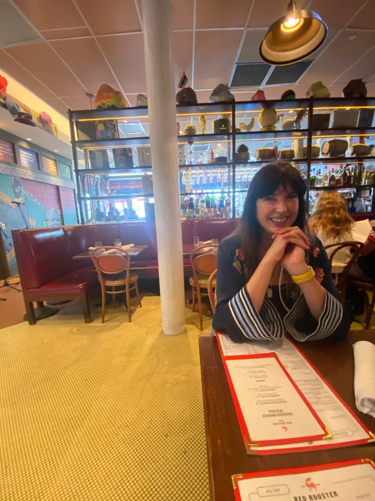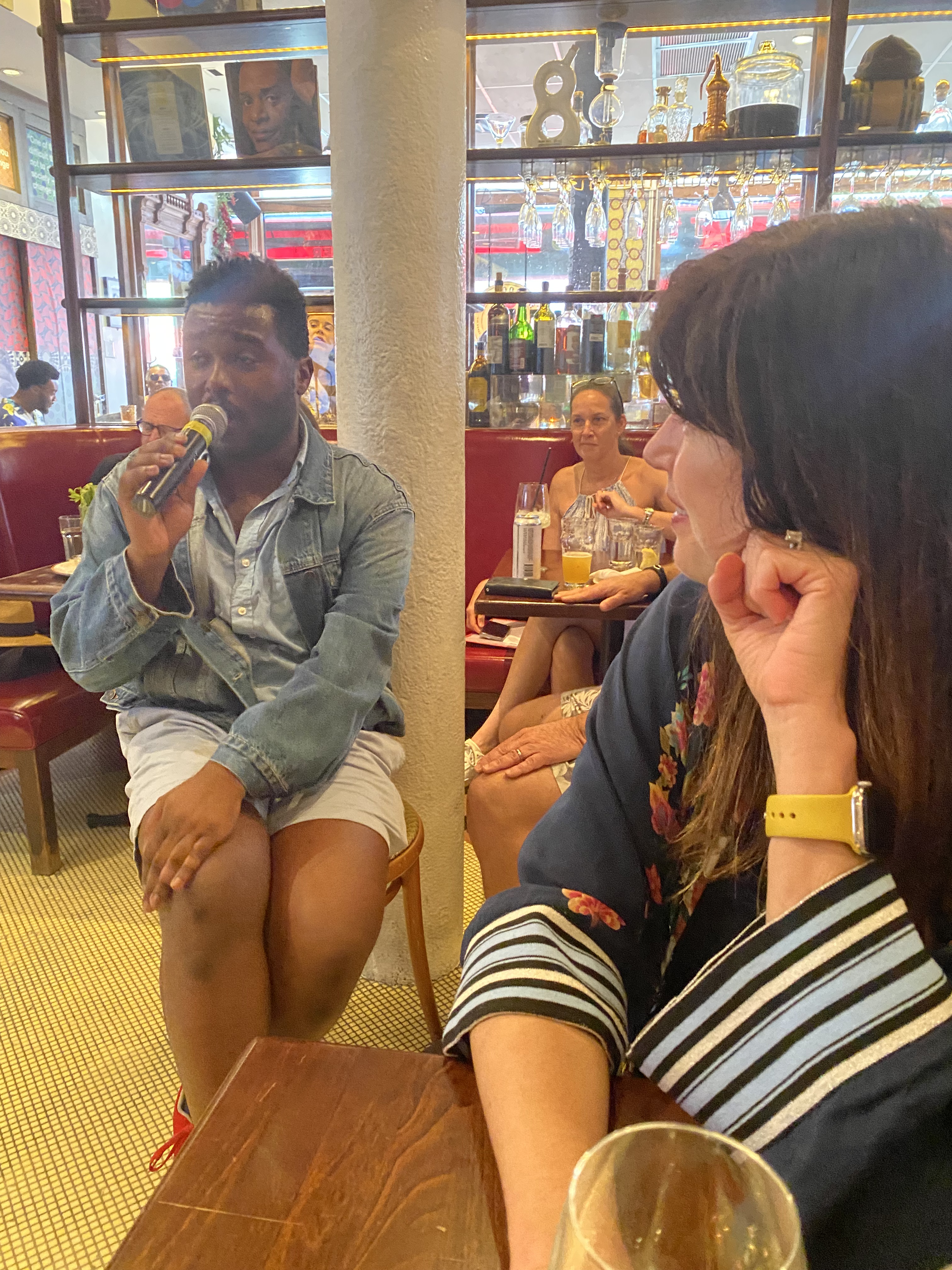 As soon as the show ended, this woman rushed up to our table to ask how we enjoyed the show…and Alex told her: “I’ve had you on my show!”