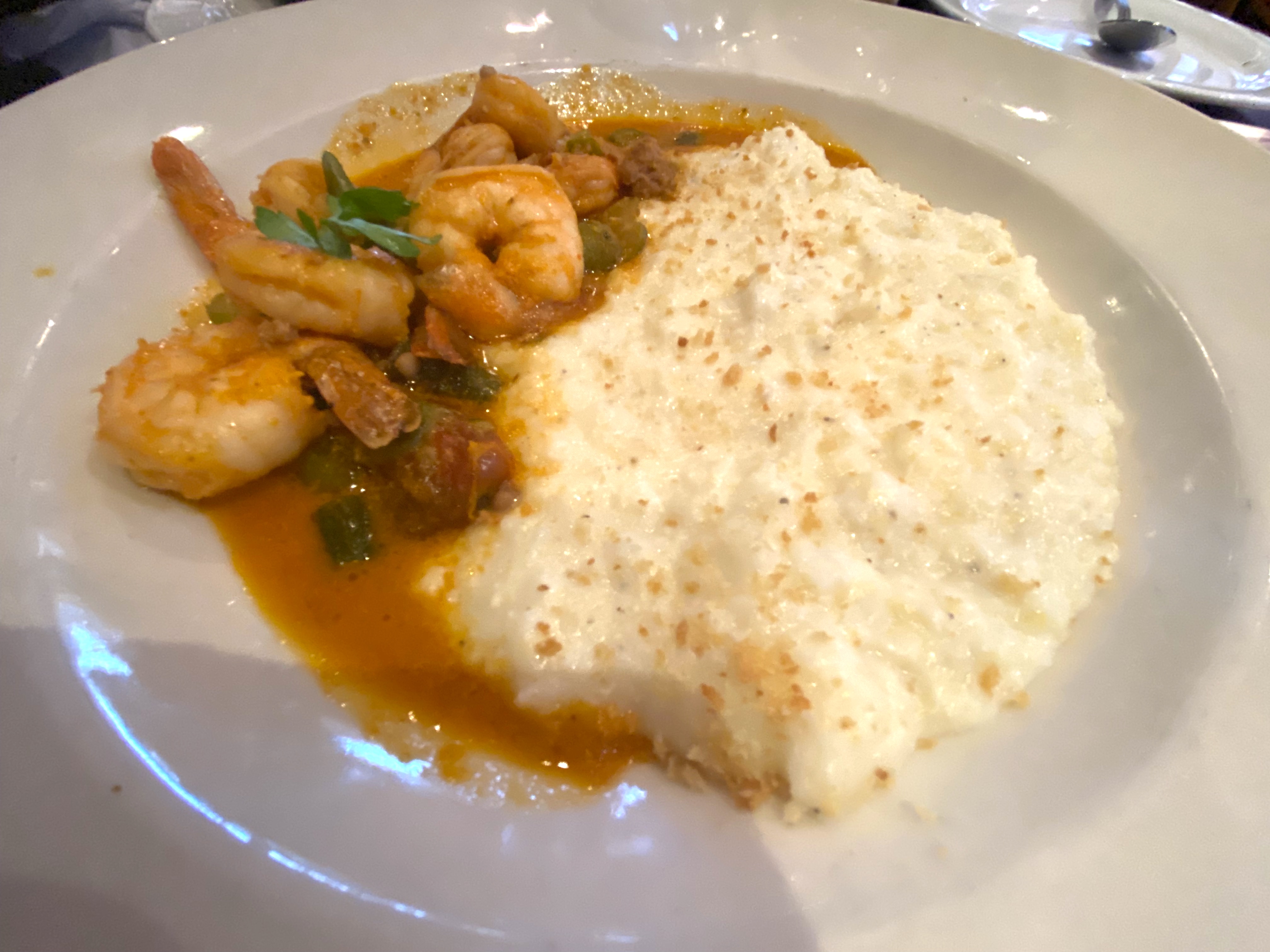 I order the shrimp with creamy grits…the creamy richness of the grits were a perfect compliment to the shrimp which had just the hint of a cajun kick to them: