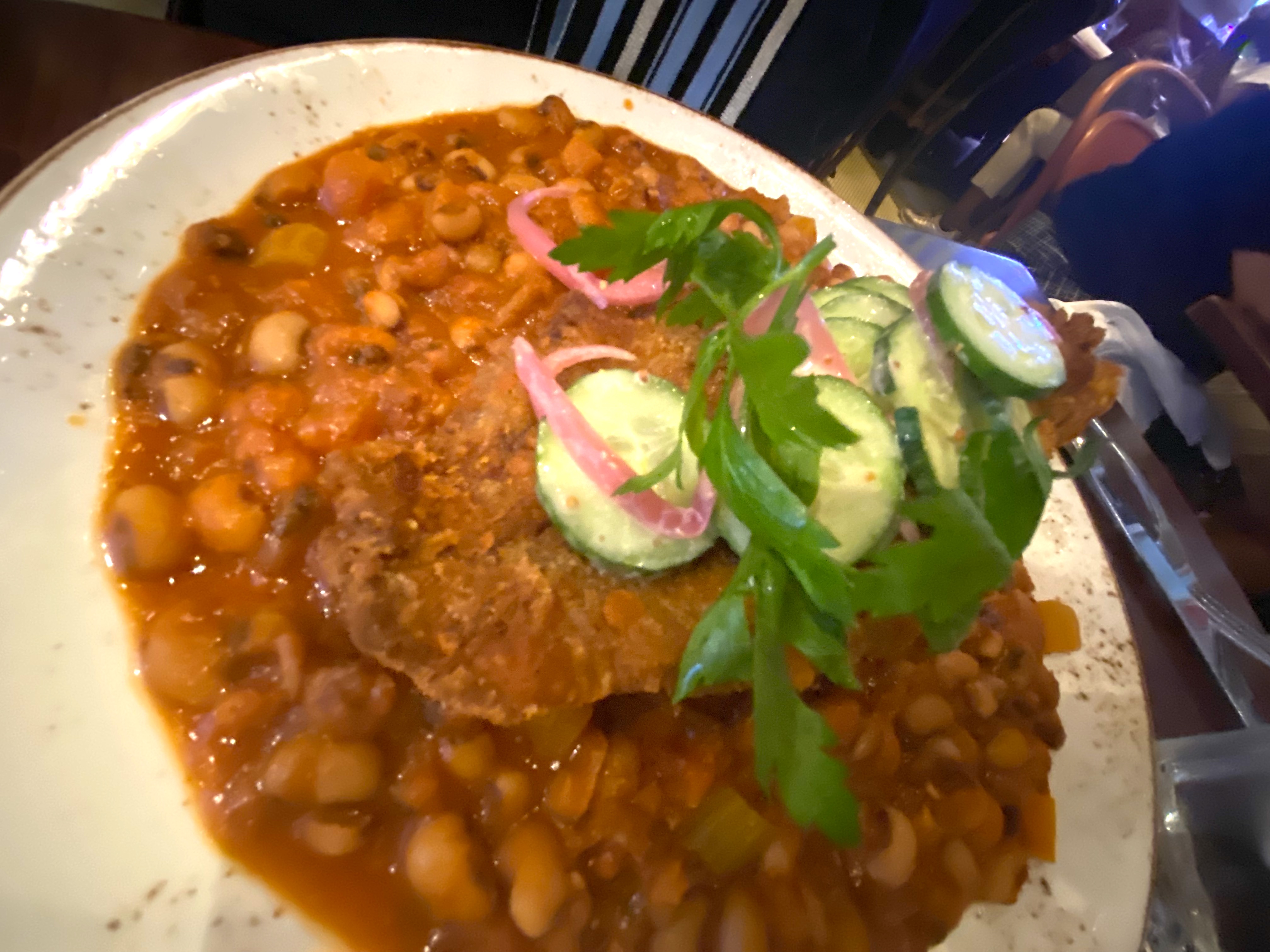 The restaurant has a great menu of classic southern food, soul food and more – like the Fried Catfish with Black-Eyed Peas that Alex ordered: