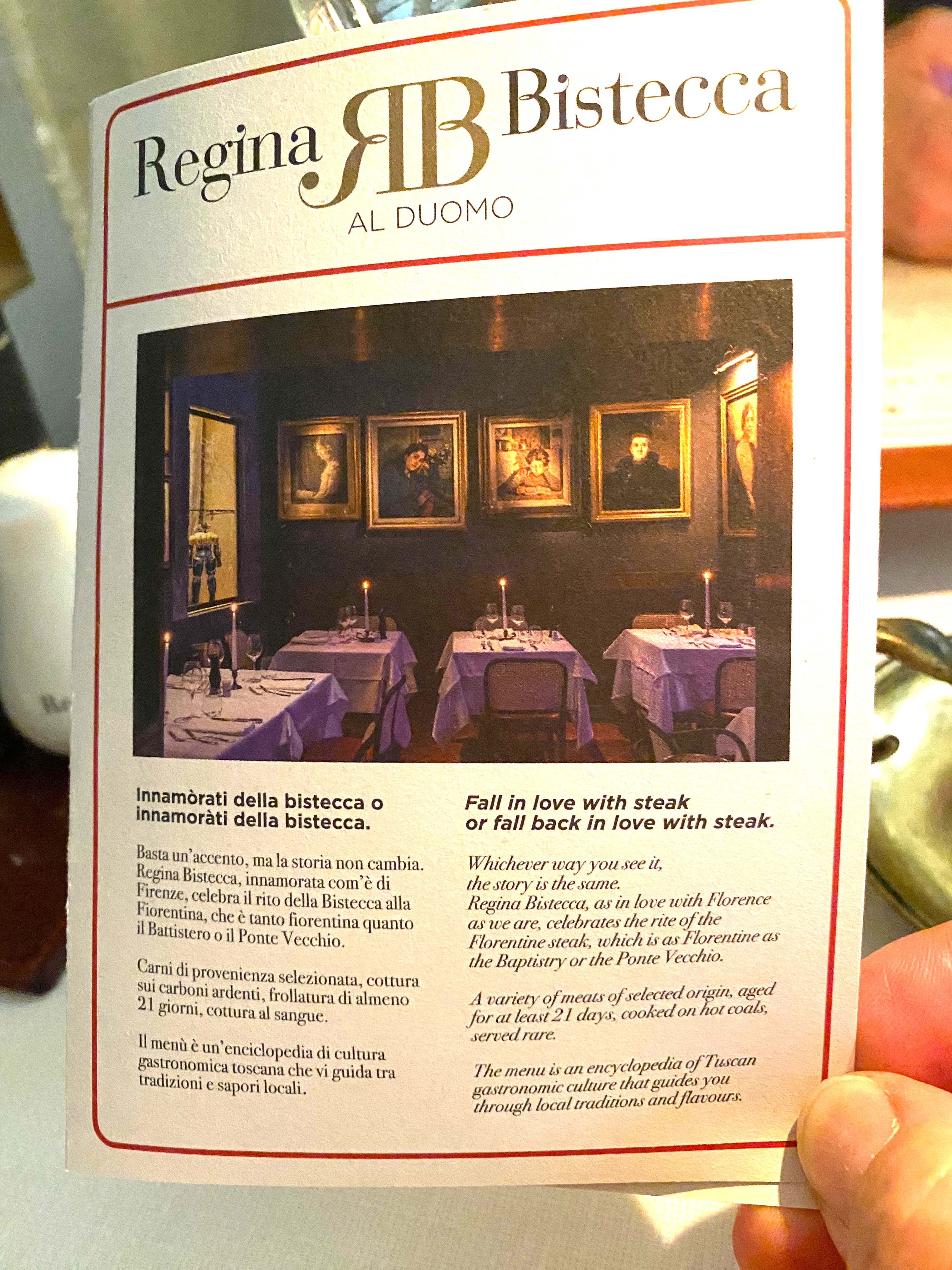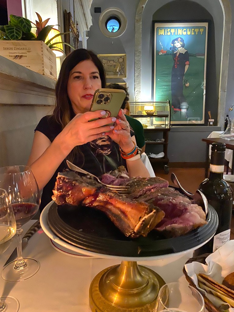“…in love with Florence as we are, celebrates the rite of the Florentine steak, which is as Florentine as the Baptistry or the Ponte Vecchio.”