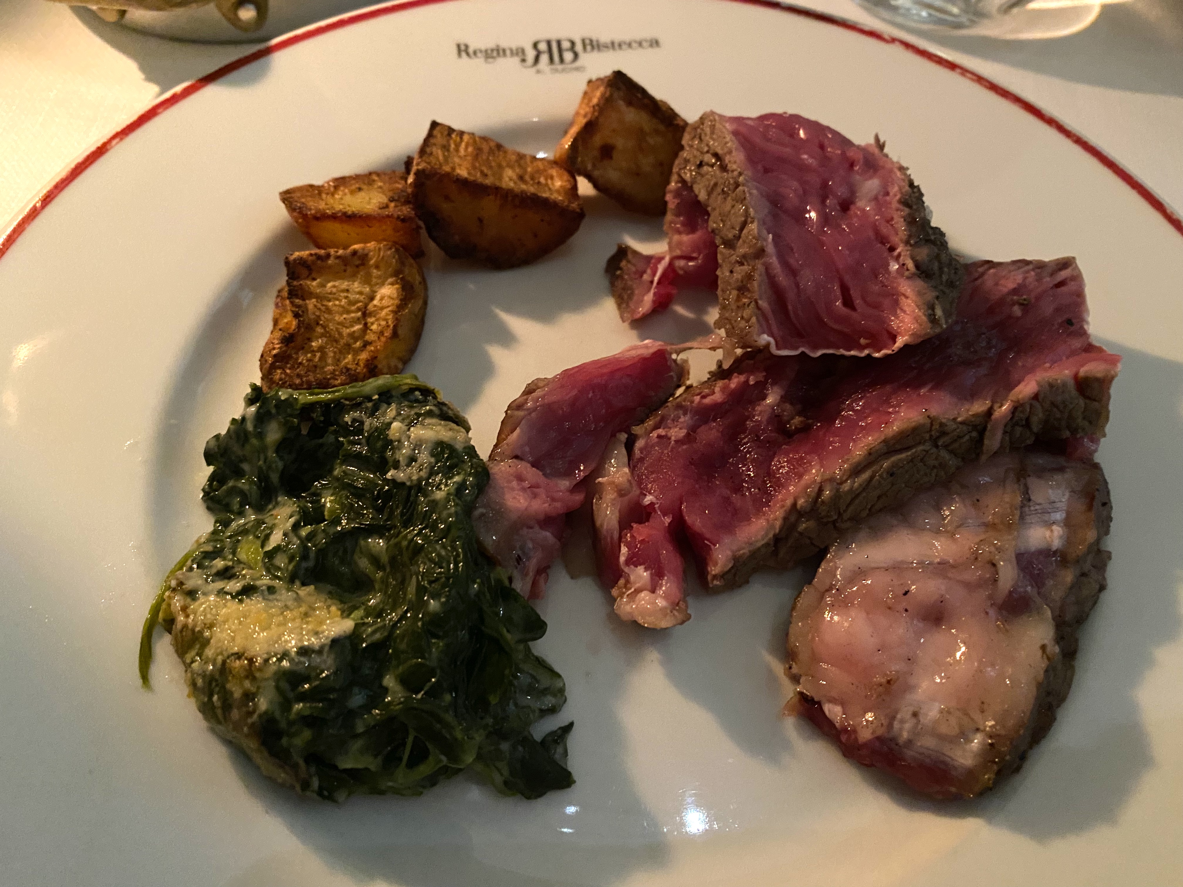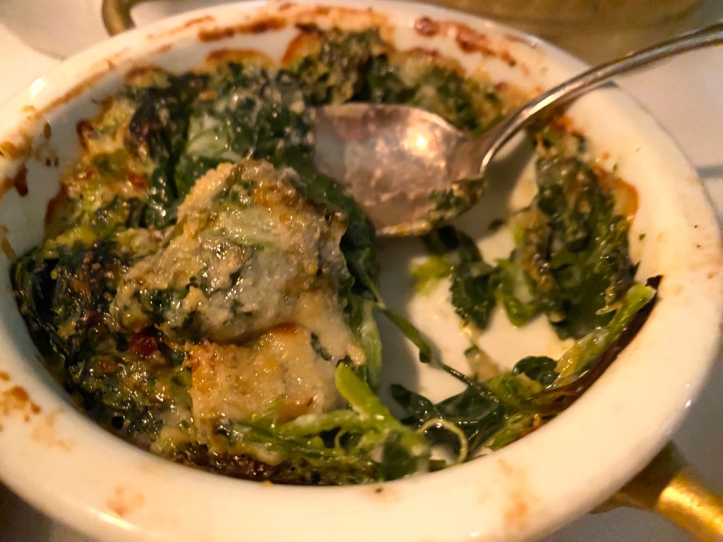 As you can see from the plate, there are side dishes that come with the dish – we got roasted potatoes and creamed spinach!