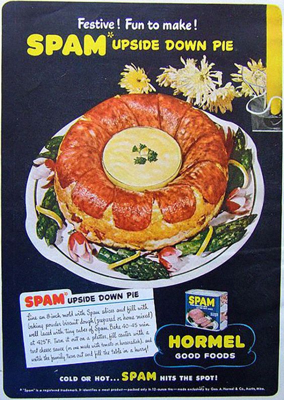 HA! There are a number of Chefs using Spam in their cooking – it’s a gimmick but sometimes it’s pretty darn good! These “retro” recipes are to be so fun to read – if perhaps not to make!