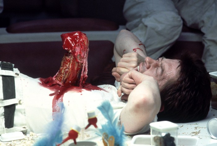 What a way to introduce a new cast member! None of the subsequent films can measure up to the shocks in this one – remember, the brilliant sequel “Aliens” is an action film even more than horror – and that shocking introduction of the “Alien” will never be topped!