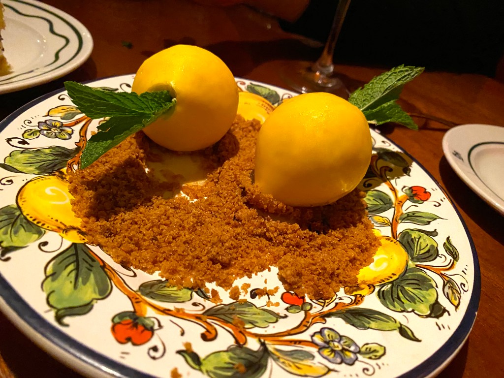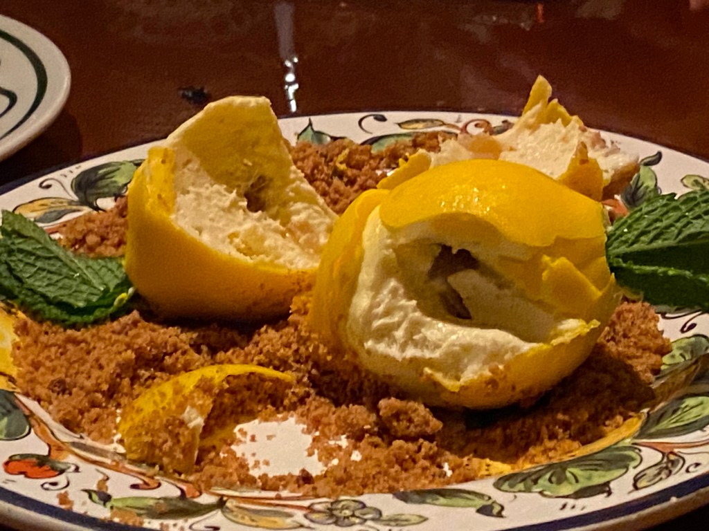 Yes, the dish looks like two lemons served atop crumbled graham cracker.