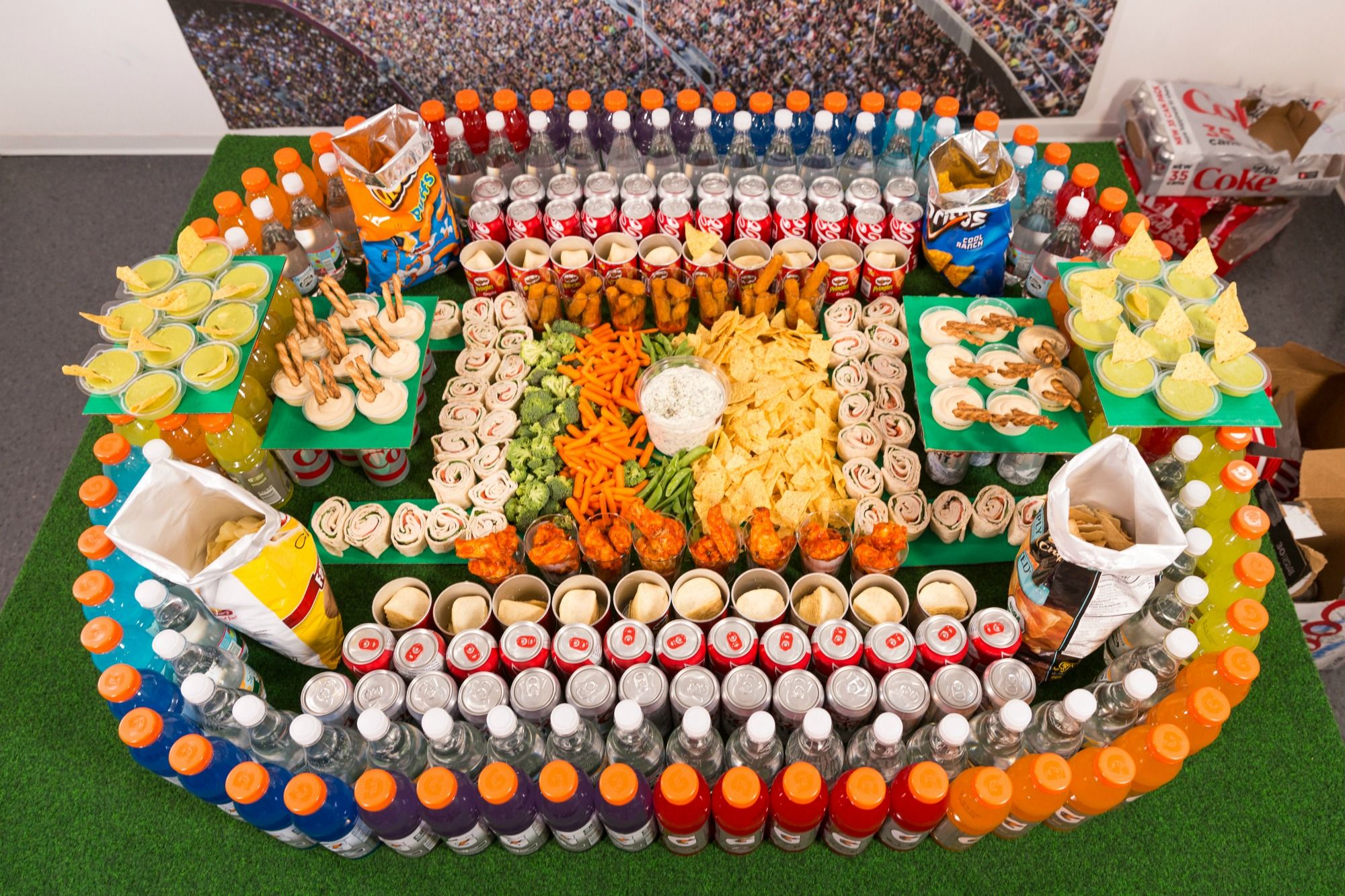And of course, you can never go wrong when you unveil a snack stadium that looks like this – all of these great pics raise a question: how much food IS eaten on Super Sunday?