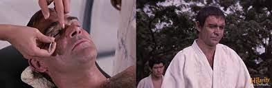 Yes, this is one of the moments in the film that hasn’t aged well – Bond undergoes some cosmetic adjusts to look more Japanese…one friend pointed lout how problematic this was – but I am torn about this.