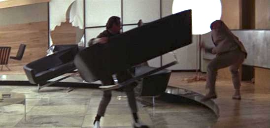 Maivia was not only the film’s fight choreographer, he’s The Rock’s Grandfather! Yes, Duane Johnson’s Grandfather takes part in this terrific one-on-one battle, which includes Bond trying to stop Maivia with a sofa!