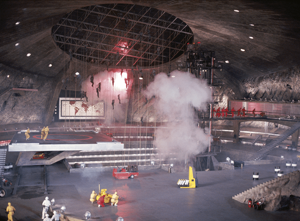 The volcano was a set built at England’s Pinewood Studios, measuring 120 feet high and 450 feet across, big enough for a helicopter to land inside and to accommodate the 100 stuntmen playing the ninja assault team. It cost about $1 million to construct, a figure equivalent to the entire budget of the first 007 movie just five years earlier!