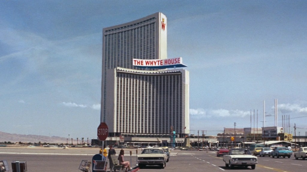 Bond ends up following the diamonds to Las Vegas – although the words “Las Vegas” are never uttered in the film – and we learn about the reclusive Willard Whyte who lives in “The Whyte House.”