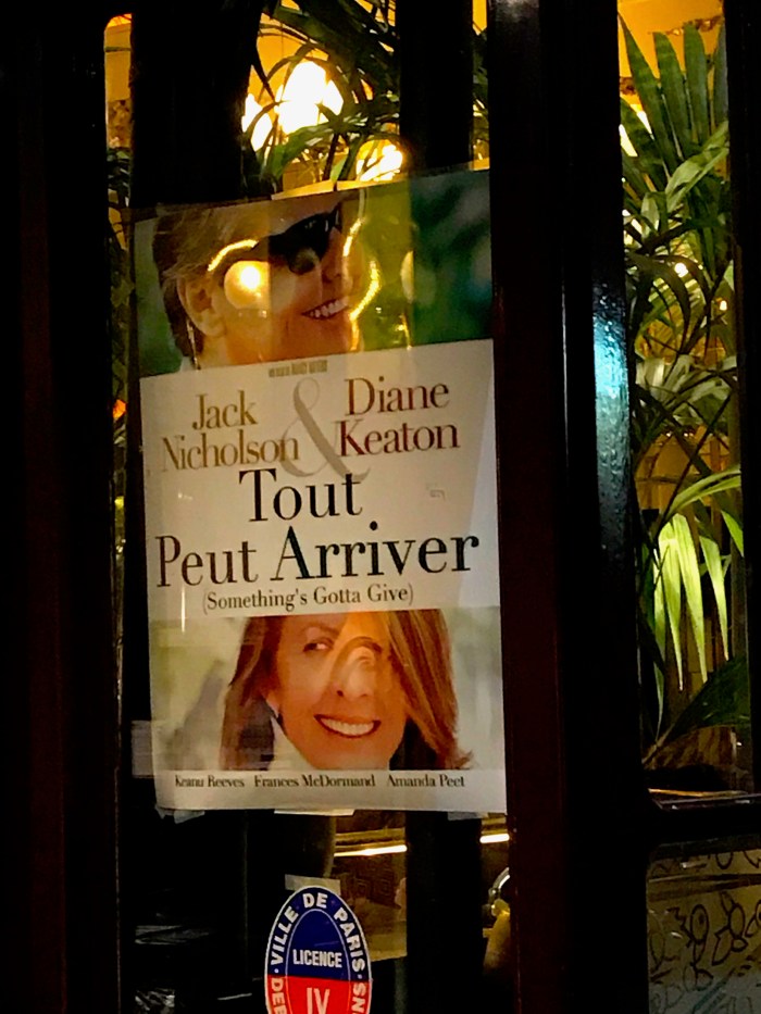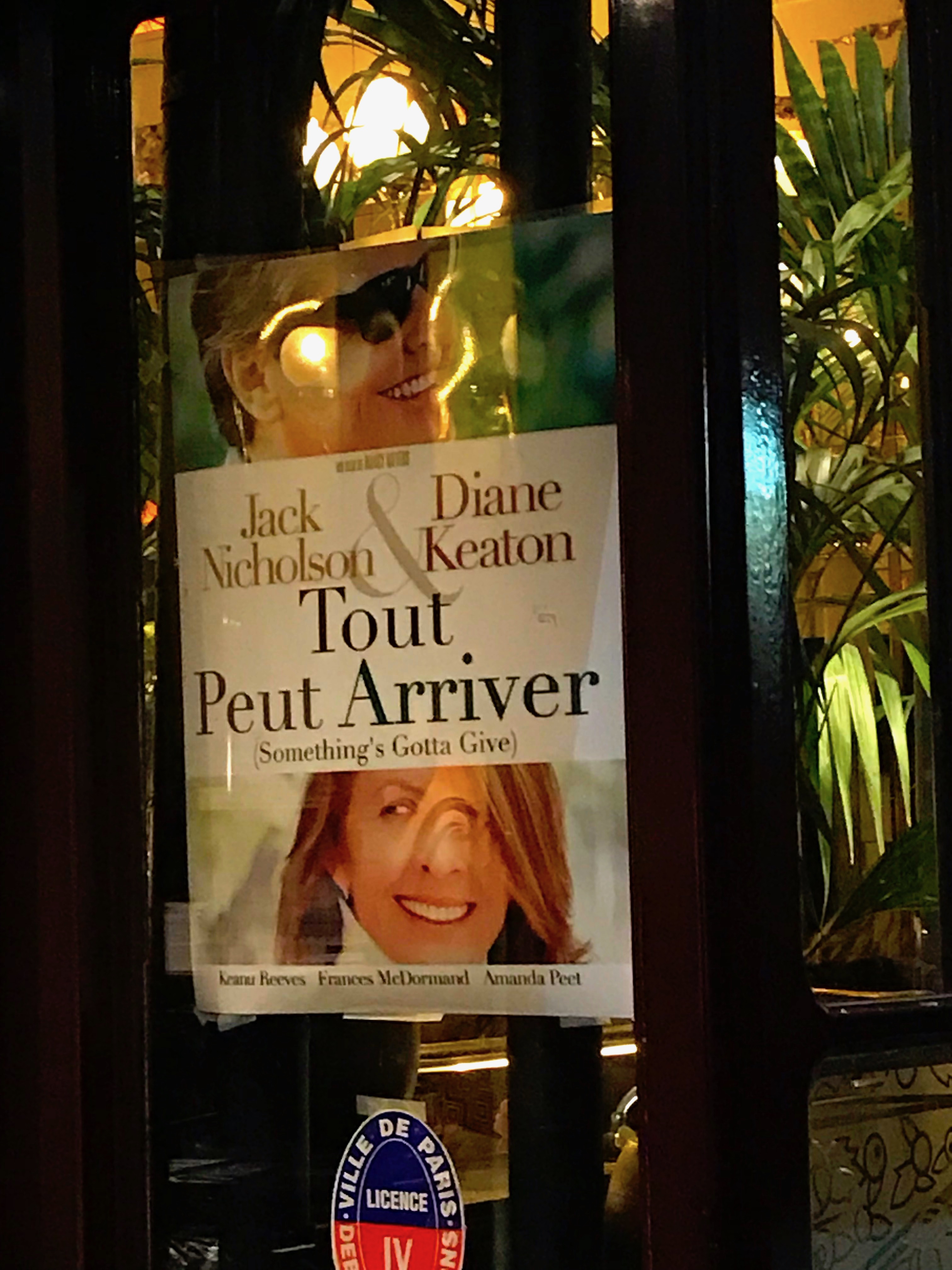 Nicholson eased into the later years of his career with effortless romantic comedies like this one – and since it was shot in Paris, I ate at the iconic restaurant they filmed in!