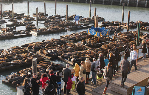 “More than 1,000 sea lions have gathered at San Francisco’s Pier 39 this spring, the largest herd in at least 15 years. Mounds of floppy, delightfully ungraceful marine mammals have plopped themselves on to rafts along the city’s pier, displaying themselves to the thousands of tourists who pass by the area each day.”