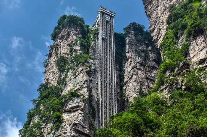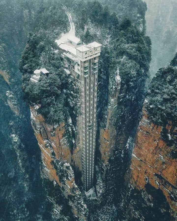 This beautiful valley gorge in China looks so remote and isolated…until you notice there’s an elevator on the right!