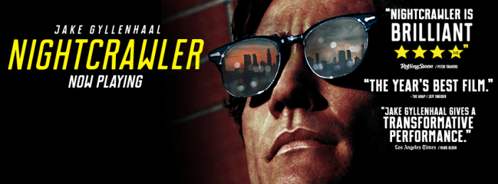 This is a devastating look at the predatory world of freelance news photographers, known as “Nightcrawlers”.