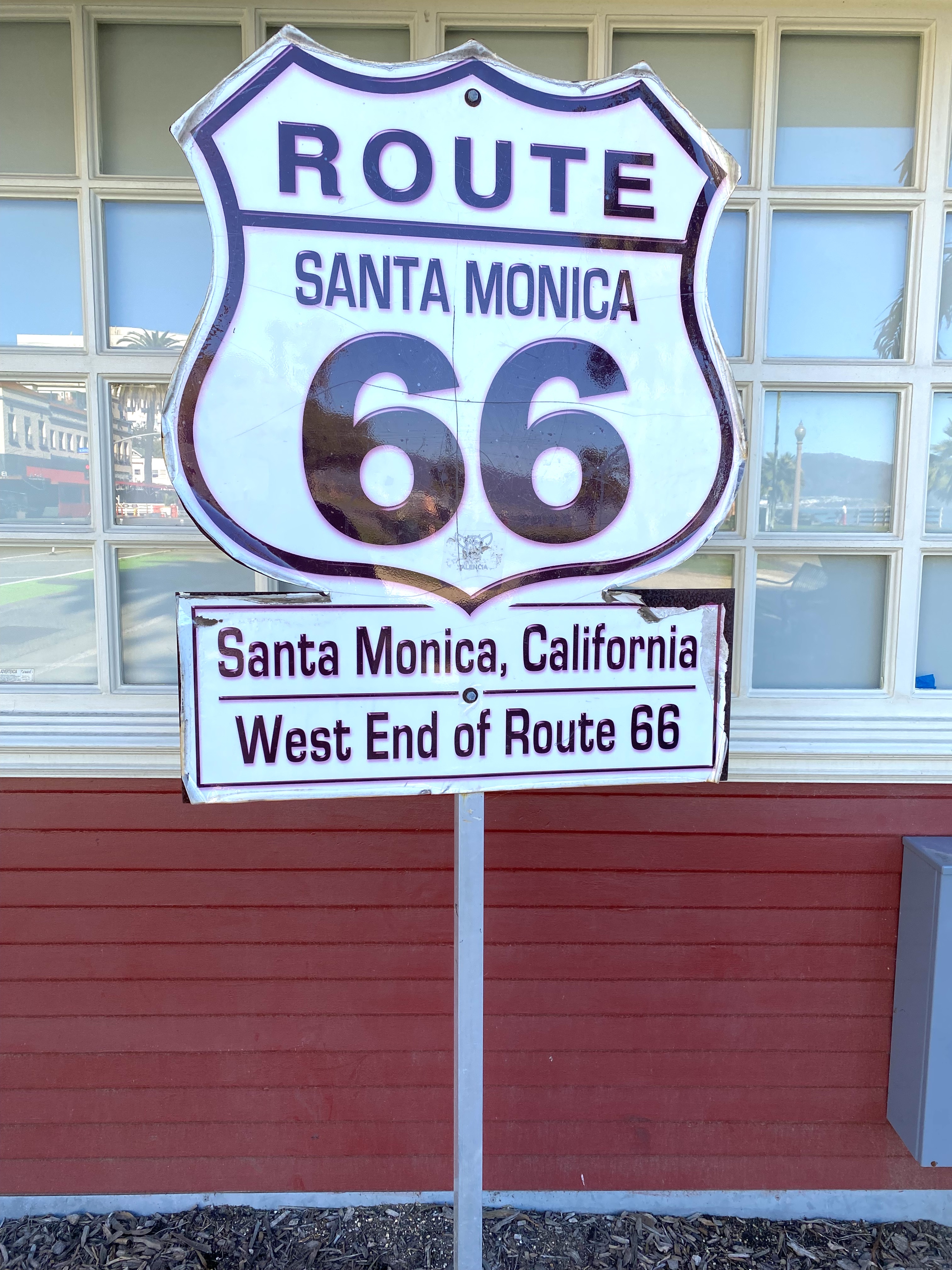 The Santa Monica Pier in the distance sits over the Pacific Ocean, and if you didn’t know, the Pier is the actual end to “Route 66” – America’s most iconic highway!