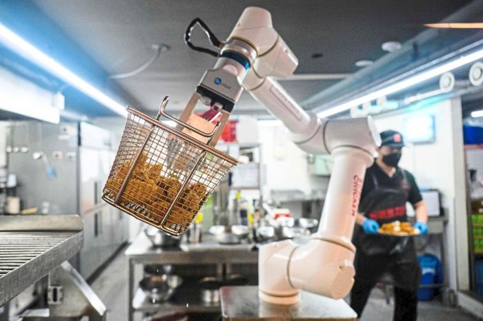 “The parade of robots continues with the planned arrival in New York City this summer of Robert Chicken, a Korean fried chicken concept that promises to liberate humans from manual labor in kitchens.”