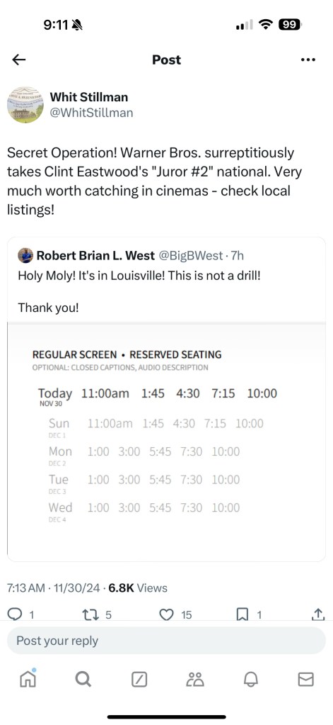 I will sharing a deep dive into all of Stillman’s films soon, but thanks to him for helping bring “Juror #2” alive for movie lovers!