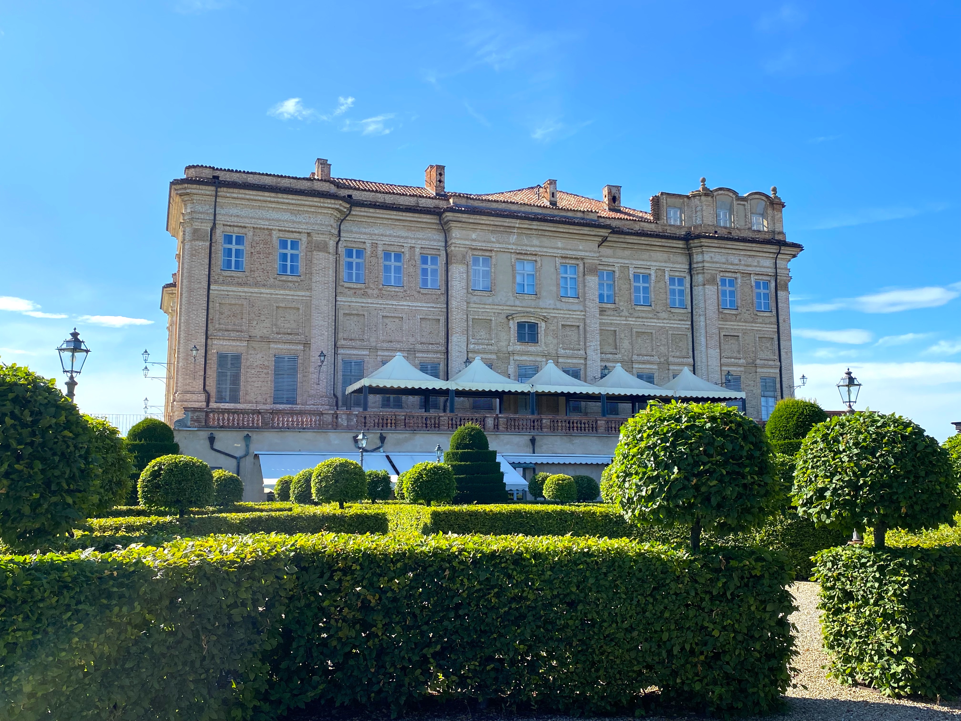 “Surrounded by gardens designed in the style of 18th century Italy, overlooking the city of Guarene, it offers splendid views over the Langhe hills, a UNESCO World Heritage Site.”