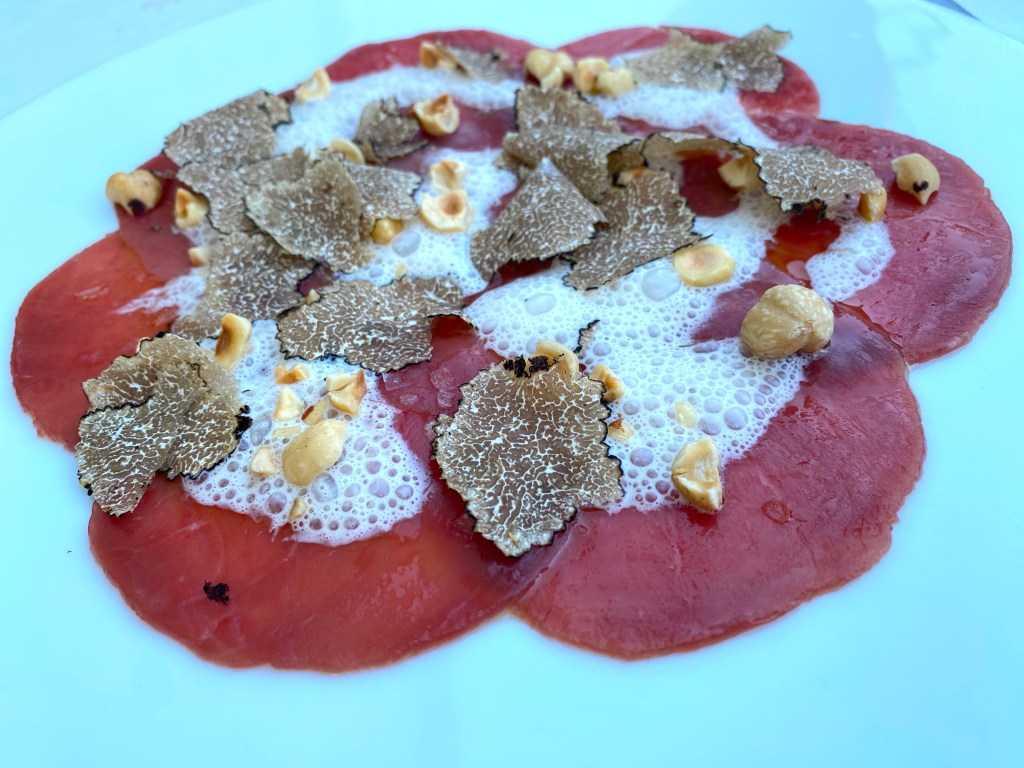 As we were in the Alba Truffle region, we had white truffle covered Ravioli, as well as a Veal Tartare with shave Truffle as well: