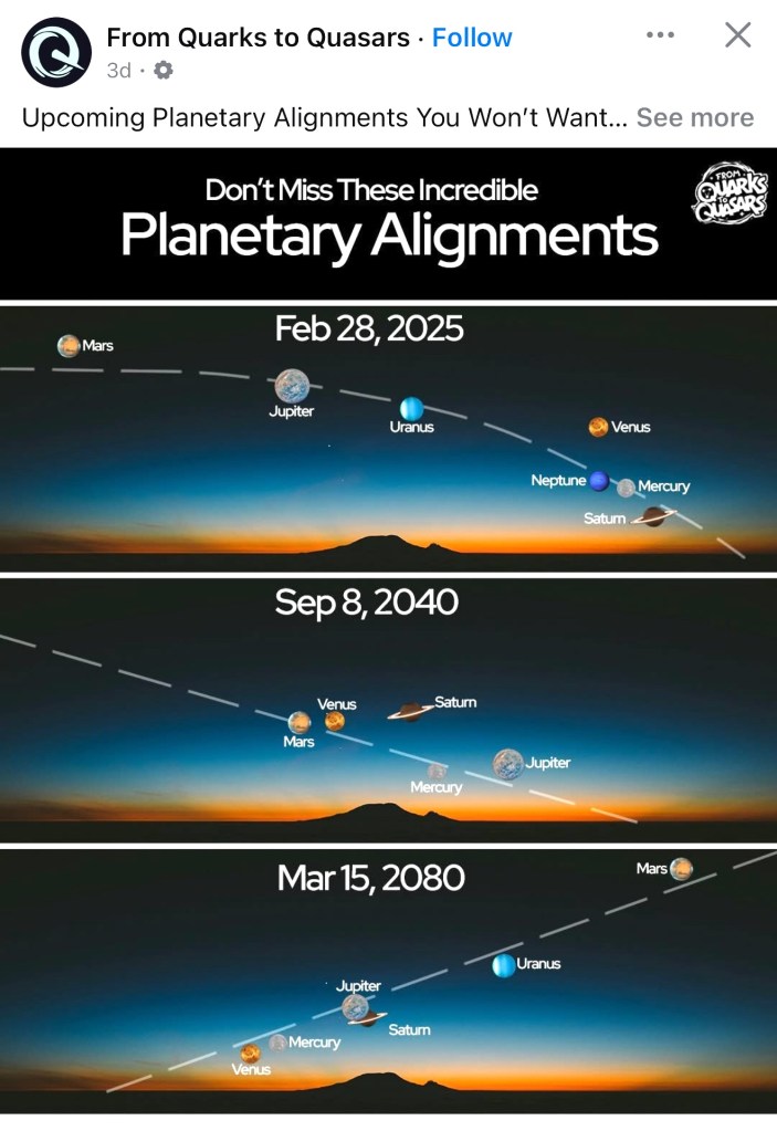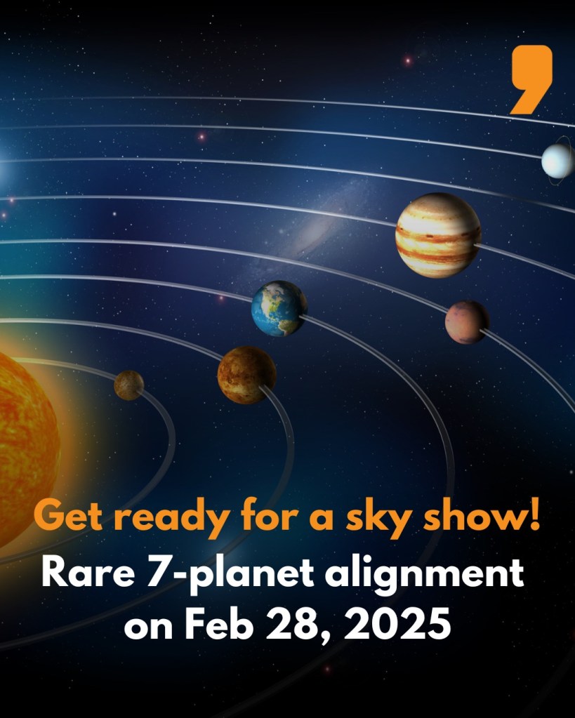 As close to a “once in a lifetime” event as you will ever look up to see, a rare seven-planet alignment (aka “planetary parade”) will light up the sky on the night of February 28, 2025, featuring Mercury, Venus, Mars, Jupiter, Saturn, Uranus, and Neptune! This won’t happen again until 2040.