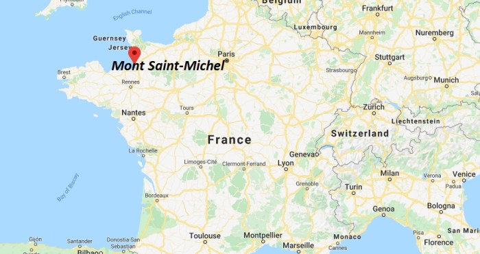 Mont Saint-Michel sits on an island approximately 0.6 miles off the country’s northwestern coast, at the mouth of the Couesnon River near Avranches.