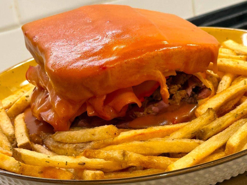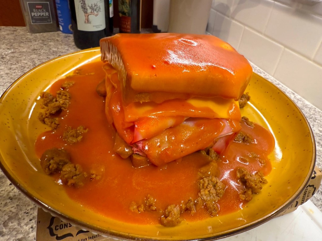 Well, you will be after you see some of the for stories I’ve been sharing: everything from a McDonald’s food mashup to ways to stretch your “egg dollar” – and this wild Portugese sandwich I made after a friend shared a photo of one; the “Franceshina!