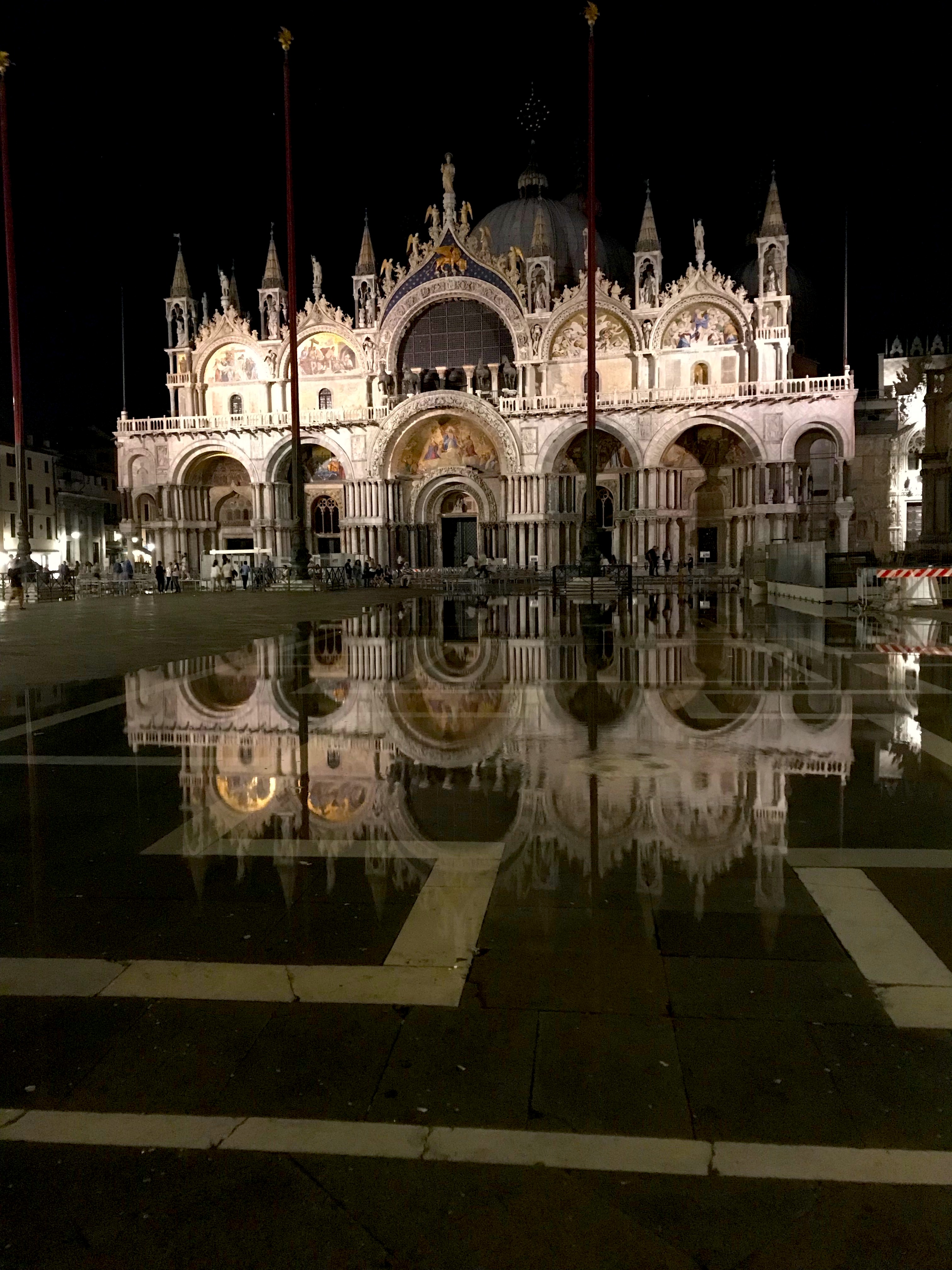 Venice is frequently underwater due to very high tides…when we were there, there was a sheen of water an inch deep in many parts of San Marco Square: