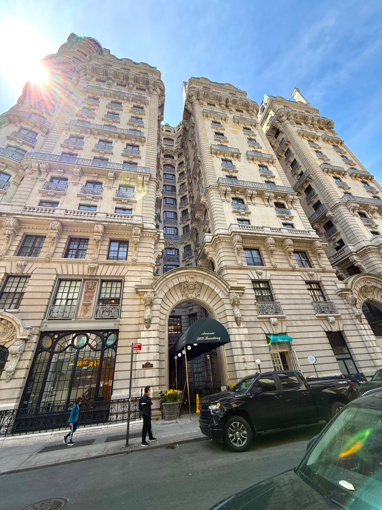 The Ansonia apartment building on the Upper West Side of Manhattan was used as Bridget’s apartment building. But there’s more – listen as I explain – I just shot this video two days ago, in gorgeous New York spring weather!