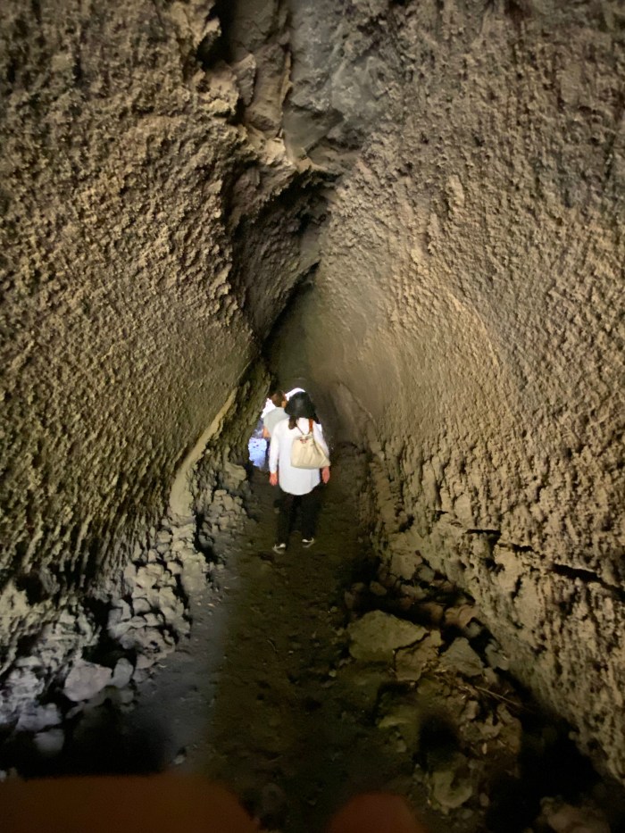 Giocomo told us how the lava can form air pockets as it cools over time – allowing us to go inside a cave made completely of lava!