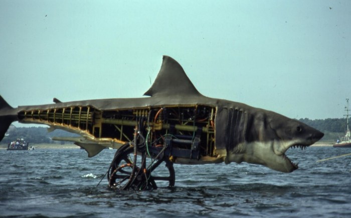 The stories are legendary that “Bruce” the mechanical shark was notoriously difficult to work with. Yes, he was named “Bruce” after Director Steven Spielberg’s lawyer. Three identical mechanical sharks were built to play the part of the great white: a “left” and “right” shark for side shots, and a full-sized one for the straight on shots.