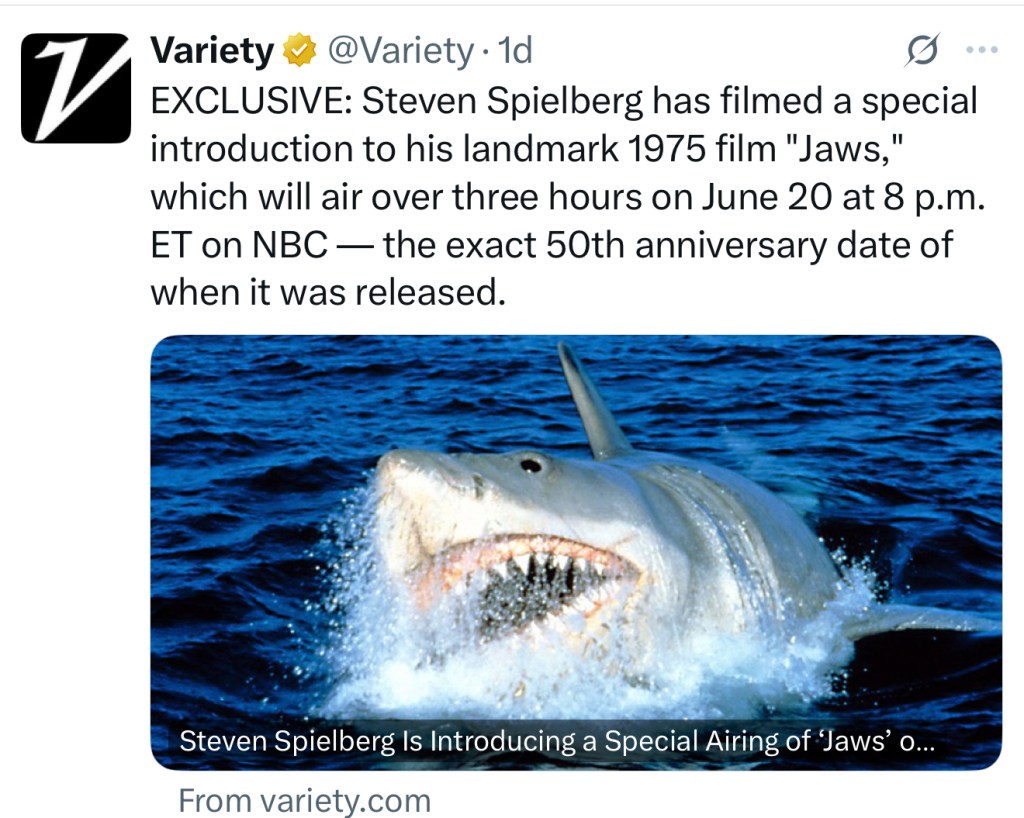 So much going on – and we plan to watch our special Blu-Ray edition as well! With so much underway for the 50th anniversary, here are five great pieces of trivia about this iconic shark tale: