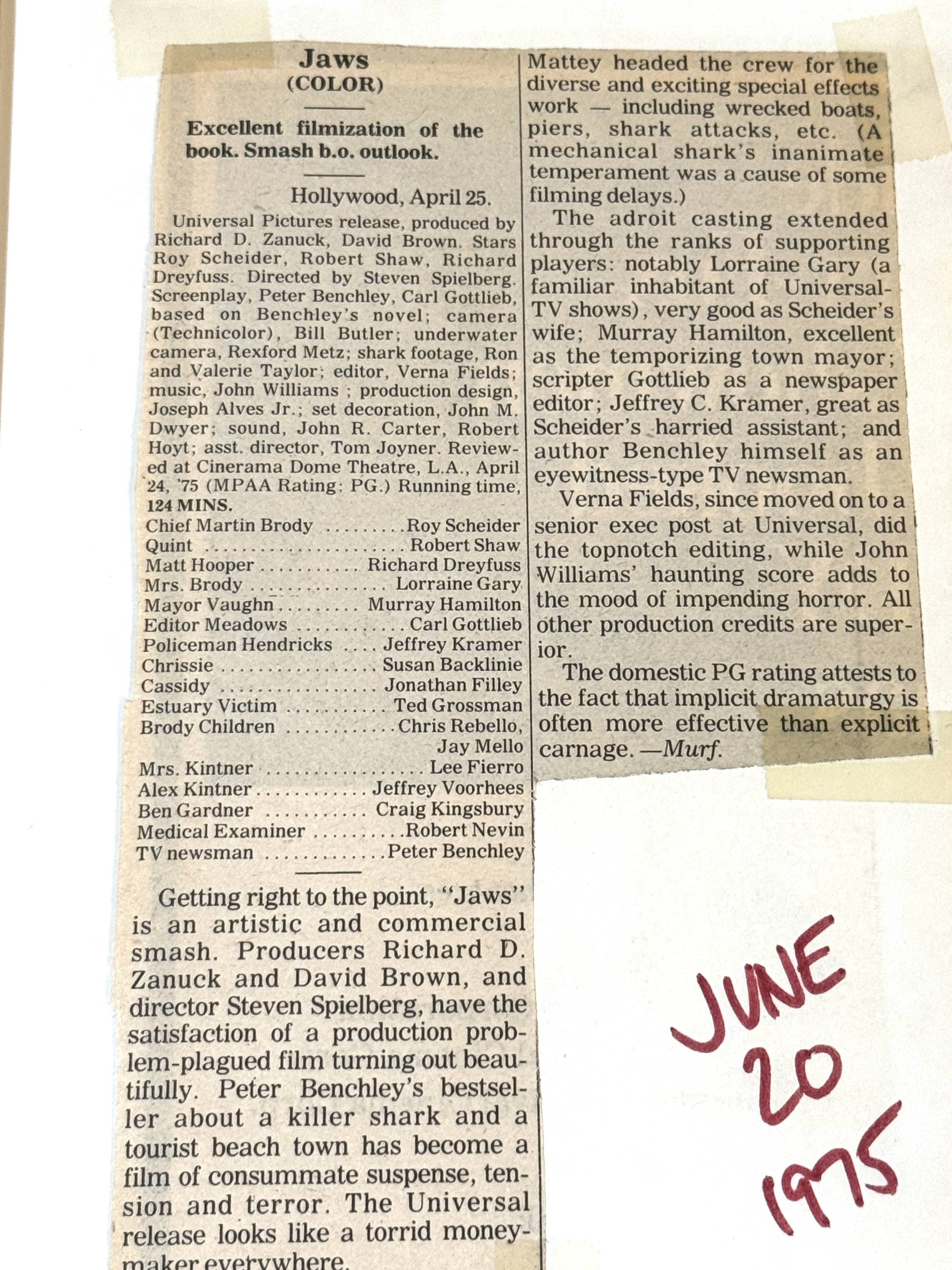 I loved “Jaws” then and still love it today!