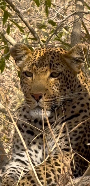 I filmed this with Alex win the foreground on purpose, so you could see just how close the Leopard was! It was resting under a tree, heavily camouflaged!