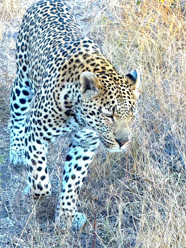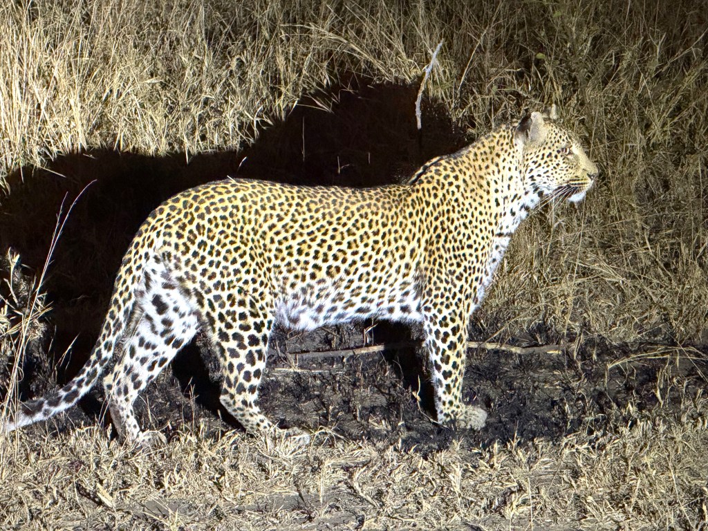 Leopards are known for their solitary nature, exceptional climbing and stalking abilities, and powerful build. They are skilled ambush predators, often hiding in vegetation and using their spotted coats for camouflage. Leopards are also nocturnal, with excellent night vision…and we were about to experience all of it!