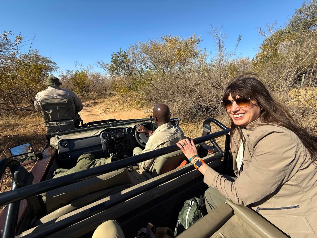 After we checked in, we dropped our bags and were immediately out on our first safari game drive, and what an adventure it was! George was our Guide, and Louis our tracker: both were incredibly informative, knowledgable end engaging…we went out for almost three hours and saw so so much, like these hungry Elephants!