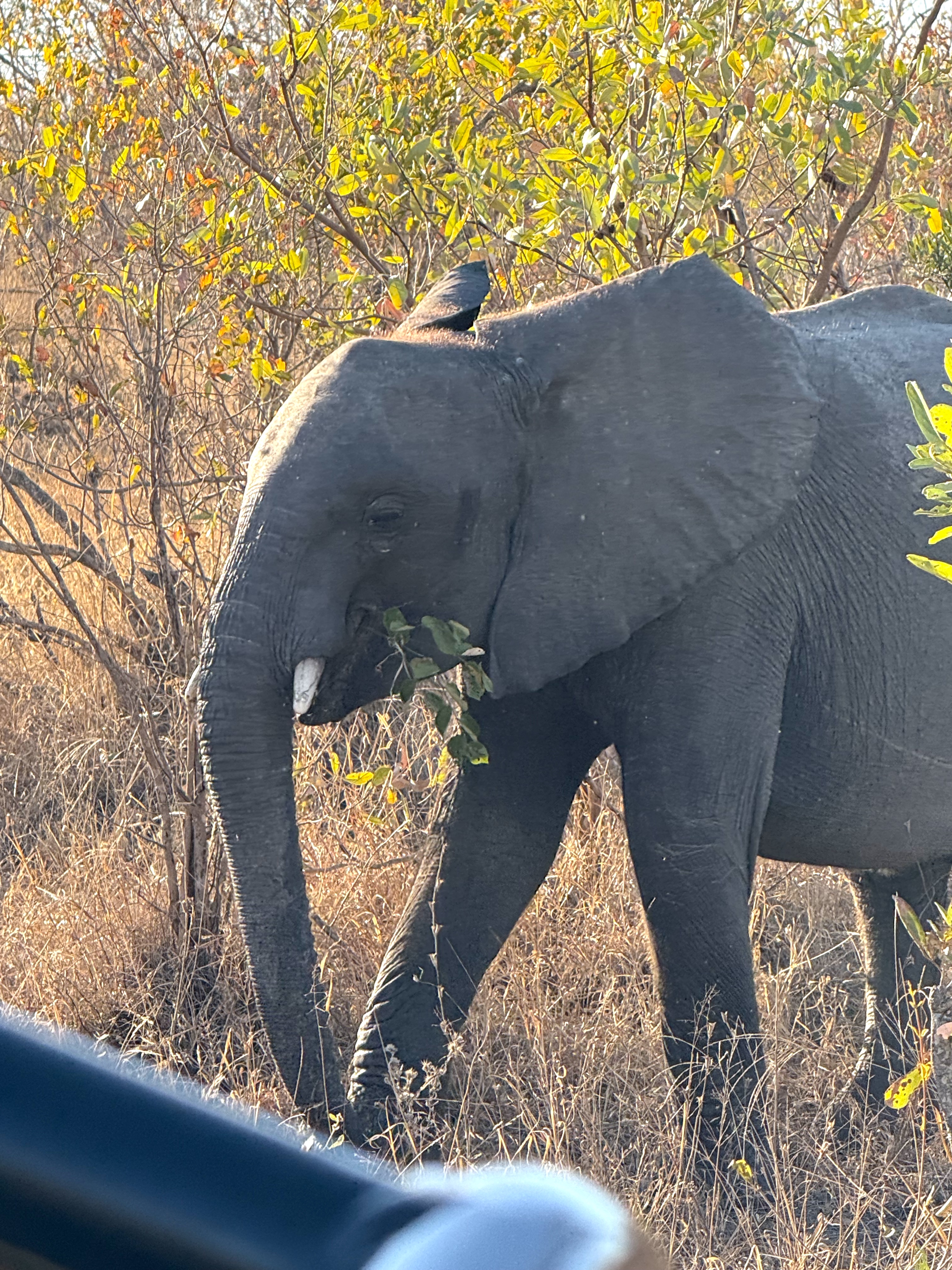 After we checked in, we dropped our bags and were immediately out on our first safari game drive, and what an adventure it was! George was our Guide, and Louis our tracker: both were incredibly informative, knowledgable end engaging…we went out for almost three hours and saw so so much, like these hungry Elephants!