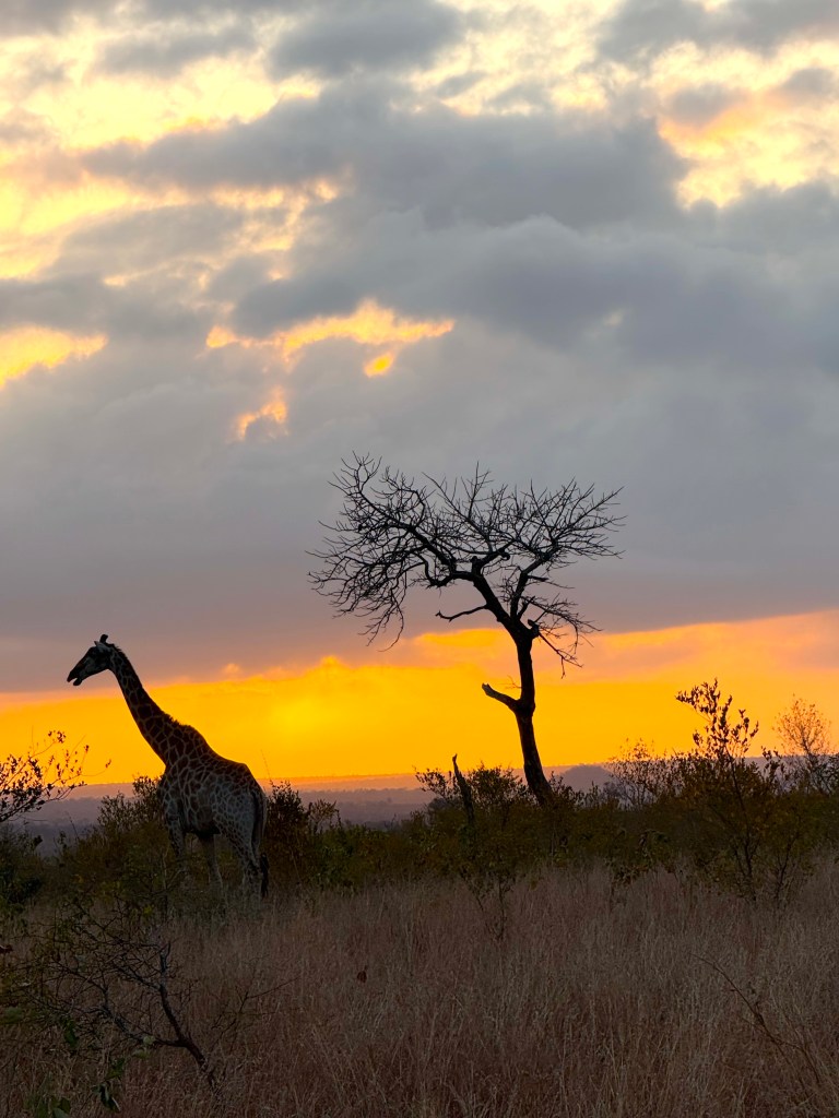 This was our very first night on safari. How could we ever top this Giraffe greeting us as the sun was setting at the Singita Boulders lodge in the Sabi Sands private reserve near Kruger National Park in South Africa…
