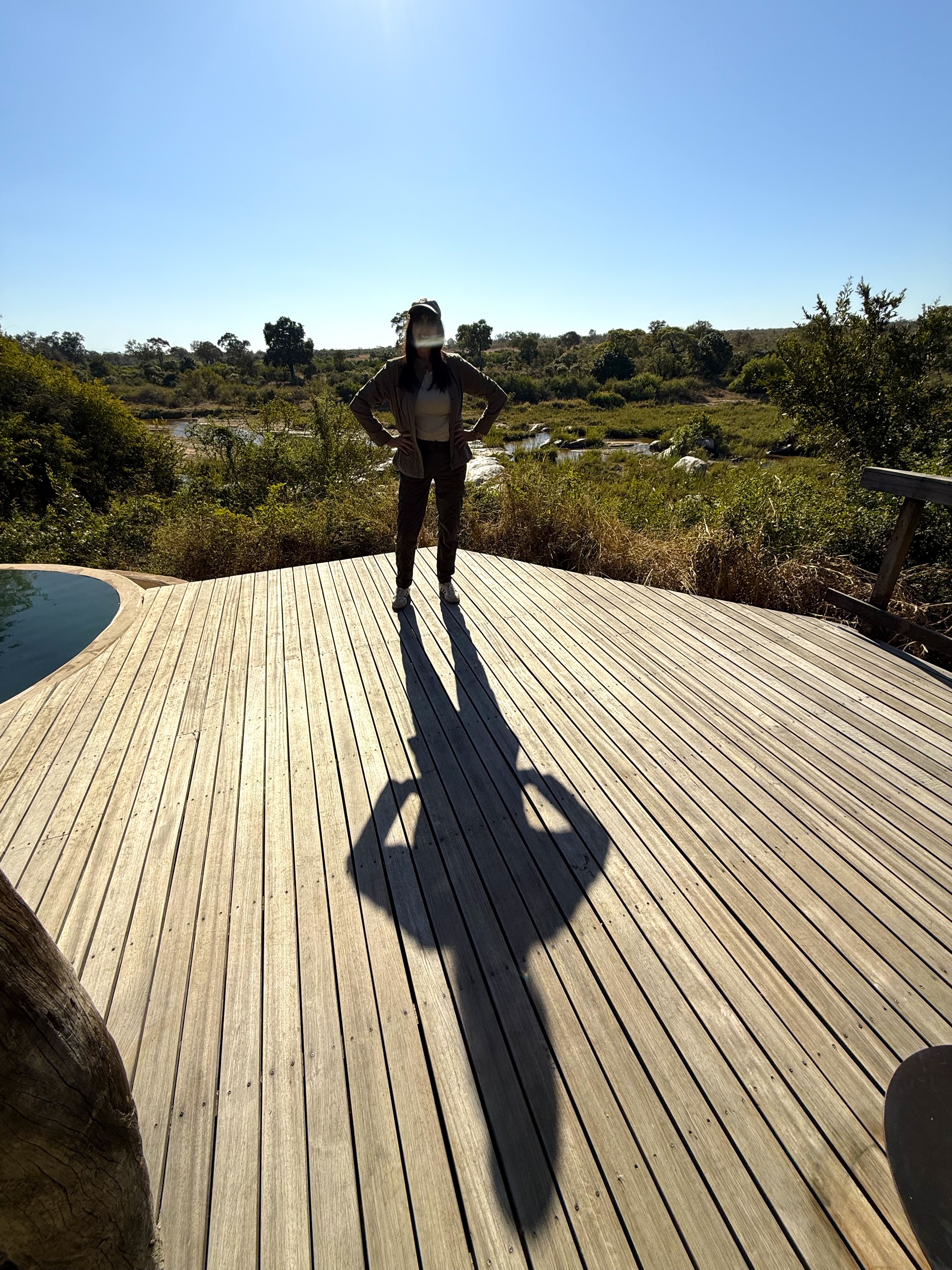 That’s my wife Alex on the deck of our room, which overlooks the Sand river and Singita’s private nature reserve beyond….and yes, we saw lots of animals from our deck, like this Water Buffalo: