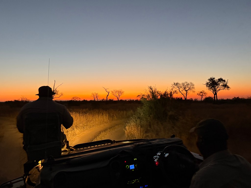 The sunset was truly spectacular – what was also incredible was what happened after dark as we drove back to the lodge…we came across a Leopard! Check this out!