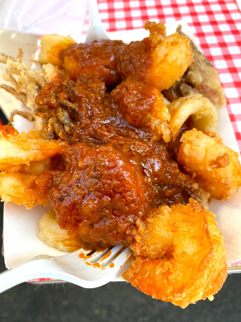 Yes, I grew up on seafood so when I saw this sign what was I to do? Of course, I ordered fried shrimp and calamari and it was delicious!