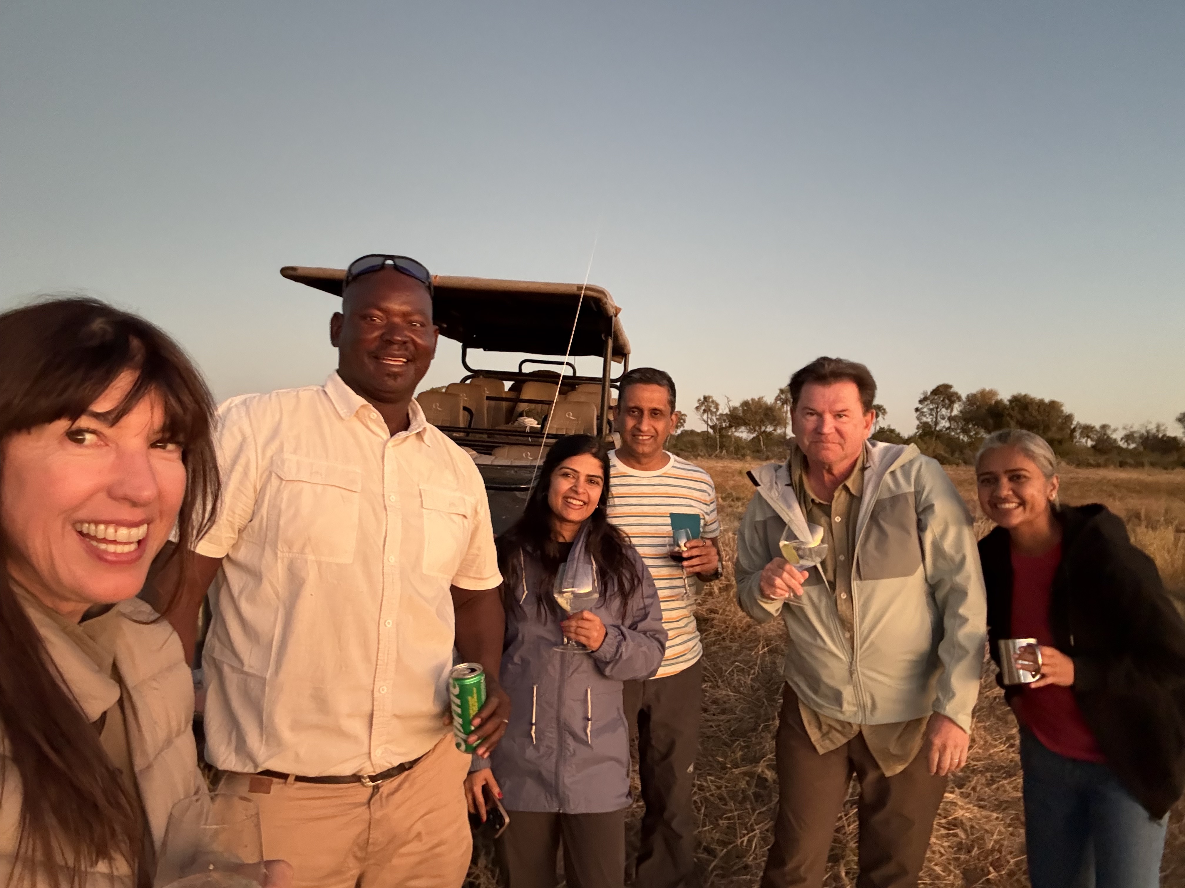 We made great new friends at Wilderness Qorokwe. That’s Alex on the left, our Guide Jacob, Sangeetha and her husband Karthik, me and Sangeetha’s sister Aravinda! We did a number of terrific safari drives together, but today we were all going on a Mokoro together!